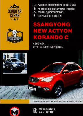 Книга по ремонту Санг Енг Корандо, руководство по эксплуатации, пособие по обслуживанию Ssang Yong Korando C с 2010 г. выпуска (учтен рестайлинг 2012), оборудованных дизельными двигателями D20DTF рабочим объемом 2,0 литра, мощностью 175 л.с.