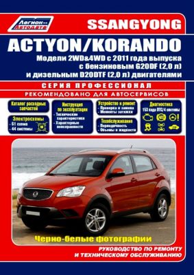 Справочно-техническое, в фотографиях, руководство по ремонту SsangYong Korando, инструкция по эксплуатации, техобслуживание, устройство, каталог запчастей Саньенг Корандо моделей 2WD и 4wD, поступивших в продажу с 2011 года и оборудованных бензиновыми двигателями G20DF и дизельными двигателями D20DTF рабочим объемом 2,0 л. Ремонт Санг Енг Корандо. Устройство, эксплуатация, диагностика, каталог расходных запчастей. Подробные схемы электрооборудования.