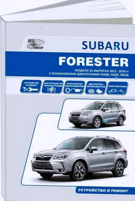 Книга по ремонту Субару Форестер 2012-2016 года выпуска, оборудованных бензиновыми двигателями FB20B, FA20F Turbo рабочим объемом 2,0 литра, а также бензиновыми двигателями FB25B рабочим объемом 2,5 литра. Руководство по ремонту Subaru Forester SG, инструкция по эксплуатации и техническому обслуживанию.