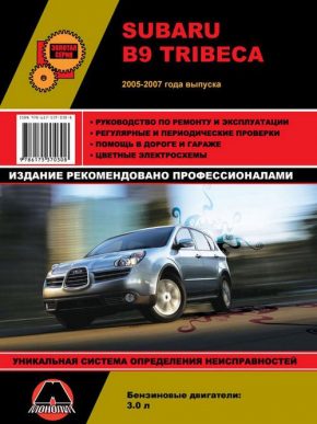Справочно-информационное издание руководство по ремонту Субару В9 Трибека, руководство по эксплуатации и техническому обслуживанию Субару В9 Трибека, устройство Subaru B9 Tribeca 2005-2007 гг. выпуска, оборудованных бензиновыми моторами рабочим объемом 3,0 л., мощность агрегата составляет 245 л.с. Ремонт узлов и агрегатов. Устройство, ТО, эксплуатация, электросхемы.
