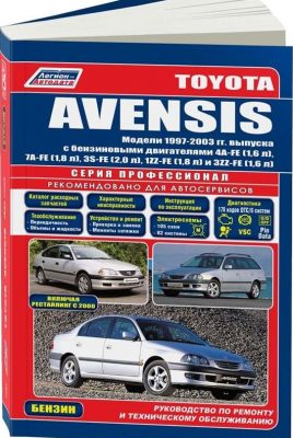 Руководство по ремонту Toyota Avensis, а также руководство по эксплуатации и техническому обслуживанию автомобиля Toyota Avensis 1997-2003 гг. выпуска, оборудованных бензиновыми двигателями 4A-FE (1,6 л), 7A-FE (1,8 л), 3S-FE (2,0 л), 1ZZ-FE (1,8 л) и 3ZZ-FE (1,6 л). Ремонт узлов и агрегатов Тойота Авенсис. Неисправности, диагностика, устройство. Рекомендации по эксплуатации и техобслуживанию. Каталог расходных запасных частей. Электрические схемы.