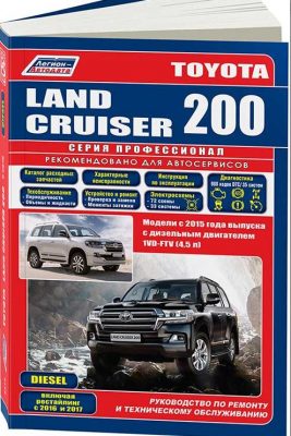 Подробнейшее, со множеством иллюстраций, справочно-информационное издание Руководство по ремонту Тойота Ленд Крузер 200, устройство Тойота Ленд Крузер 200, инструкция по эксплуатации и техническому обслуживанию Тойота Ленд Крузер 200 с 2015 г. выпуска (рестайлинги 2016 и 2017 годов учтены).