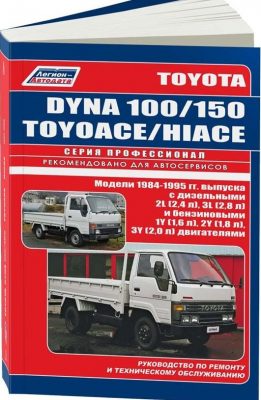 Руководство по ремонту, техническому обслуживанию и эксплуатации, устройство заднеприводных грузовых автомобилей Toyota Dyna 100, 150, Hiace, Toyoace 1984-1995 гг. выпуска, оборудованных дизельными двигателями 2L (2,4 л.), 3L (2,8 л.) и бензиновыми карбюраторными двигателями 1Y (1,6 л.), 2Y (1,8 л.) и 3Y (2,0 л.). Ремонт Тойота Дюна 100. Техобслуживание. Электрические схемы.