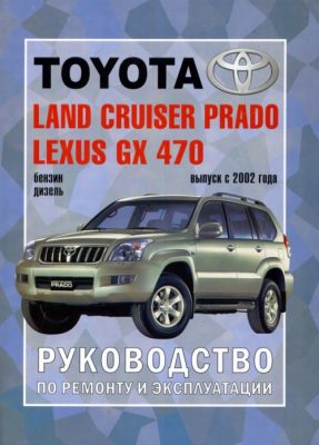 Инструкция по ремонту Toyota Prado 120, Lexus GX470, пособие по эксплуатации и техническому обслуживанию автомобилей Toyota Prado 120, Lexus GX470 с 2002 г. выпуска, оборудованных бензиновыми двигателями рабочим объемом 2,7, 4,0 и 4,7 л., а также дизельными двигателями рабочим объемом 3,0 л.
