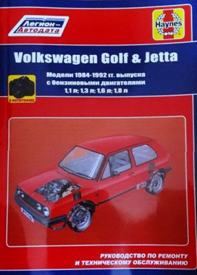 Руководство по ремонту Volkswagen Golf 2, инструкция по эксплуатации Фольксваген Гольф 2, книга по обслуживанию VW Golf 2 1984-1992 г. выпуска, оборудованных бензиновыми двигателями рабочим объемом 1,1, 1,3, 1,6, 1,8 литра.
