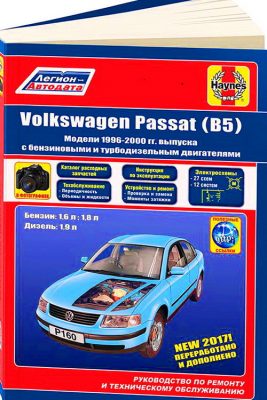 Руководство по ремонту Volkswagen Passat B5 1996-2000 г. выпуска, книга по эксплуатации, инструкция по обслуживанию Фольксваген Пассат В5, оборудованных бензиновыми двигателями рабочим объемом 1,6 и 1,8 литра, турбодизельными двигателями рабочим объемом 1,9 литра.