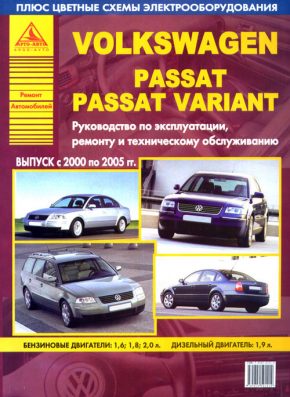 Руководство по ремонту, техническому обслуживанию и эксплуатации автомобилей Volkswagen Passat / Passat Variant 2000-2005 гг. выпуска, оборудованных бензиновыми двигателями рабочим объемом 1,6, 1,8, 2,0 л, и дизельными двигателями рабочим объемом 1,9 л.